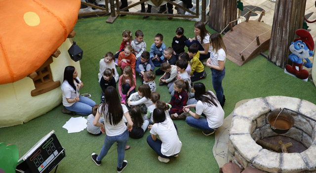 Tim povodom, u atrijumu BIG FASHION centra, od 24. februara do 12. marta, otvorena je besplatna interaktivna postavka "Izgubljeno selo Štrumpfova" u okviru koje decu očekuje druženje sa Velikim Štrumpfom, Štrumpfetom i Trapavkom.