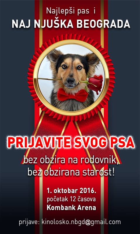 Kinološko društvo Novi Beograd u subotu, 1. oktobra, na severnom platou Kombank Arene, organizuje veliku kinološku manifestaciju Naj njuška Beograda, izbor za najlepšeg psa Beograda, a ulaz je slobodan za sve posetioce.