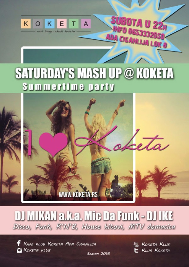 Stiže nam još jedna vrela letnja klupska sezona! U subotu 25. juna za zagrevanje i najbolje mikseve stranih i domaćih house, funk, latino, disco i RNB hitova bice zadužen rezident kluba Koketa DJ Mikan a.k.a MIC DA FUNK!