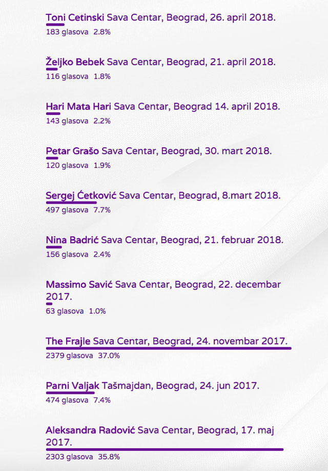 U kategoriji KONCERT GODINE pobedu su odnele "The Frajle" za koncert koji je održan u beogradskom Sava Centru, 24. novembra 2017. godine.