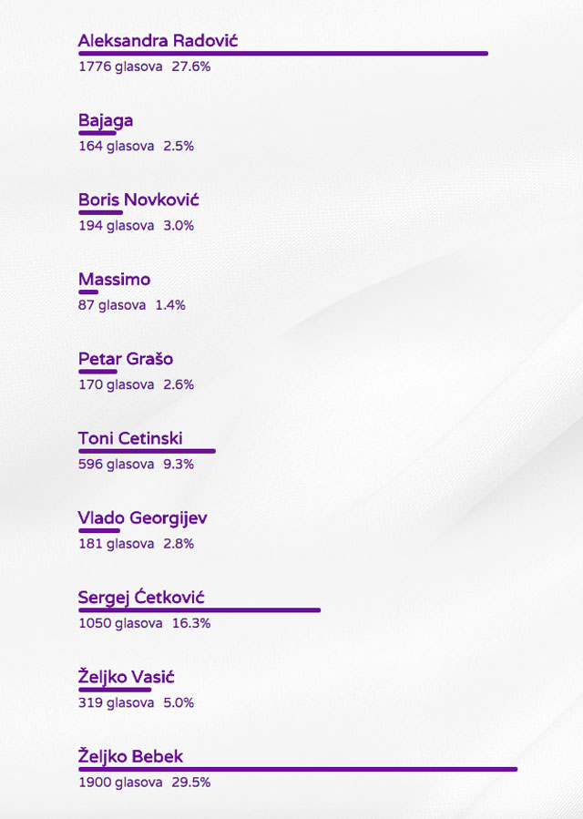 U kategoriji PEVAČ GODINE publika je izglasala Željka Bebeka.