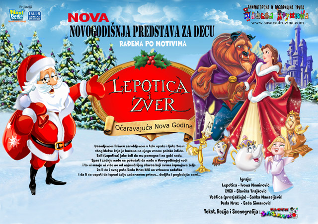 Novogodišnja predstava Očaravajuća Nova Godina, rađena po motivima bajke Lepotica i zver u izvođenju animatorske trupe Šašava družina, ulepšaće praznike najmlađima.